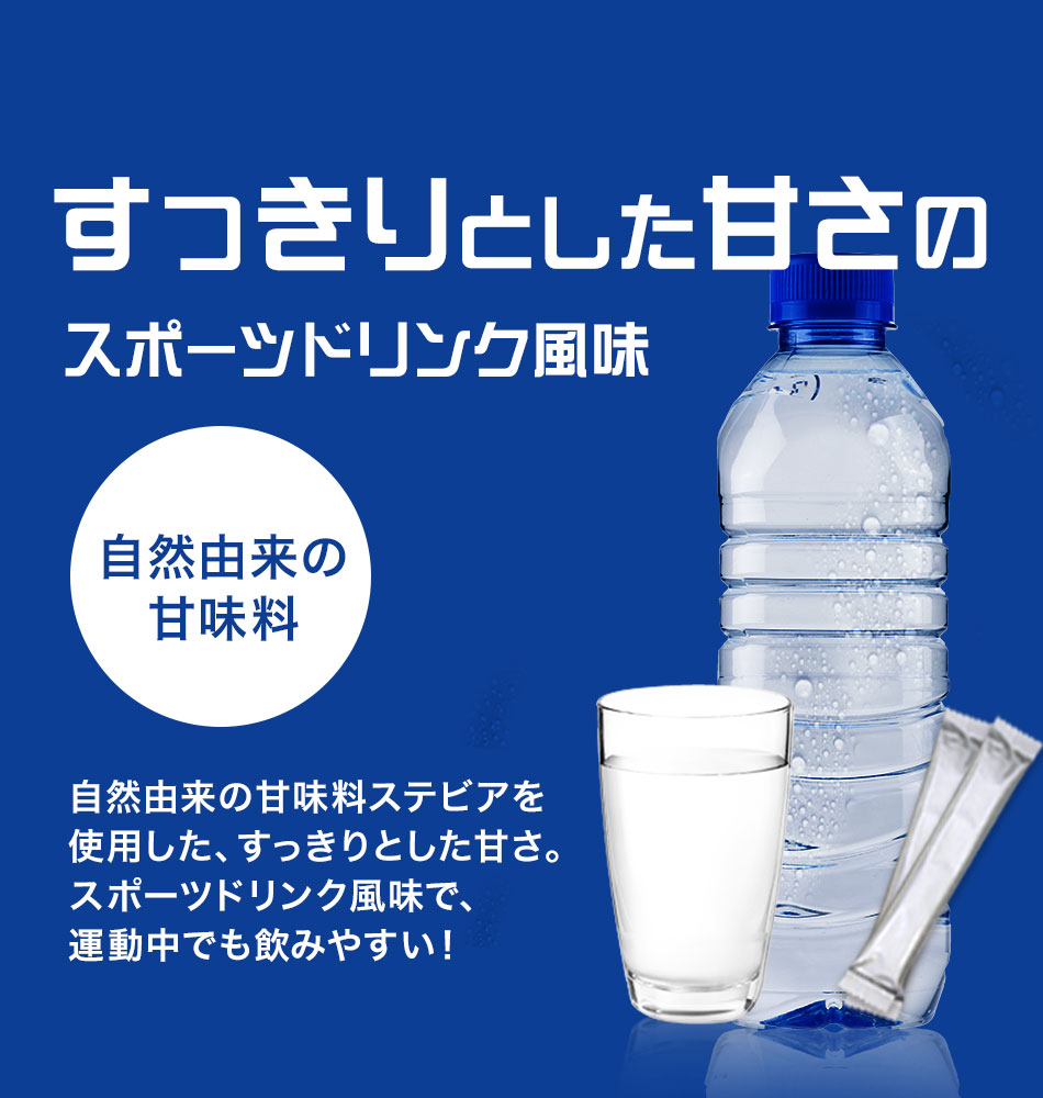 ブドウ糖(ドイツ製造)、食塩、デキストリン/クエン酸、甘味料(ステビア)、香料、リン酸三カルシウム