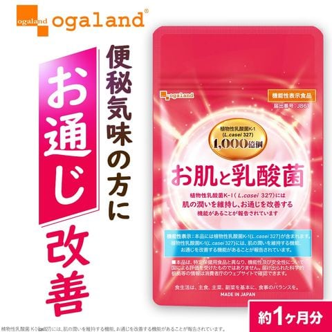 【リニューアル】お肌と乳酸菌(約1ヶ月分) 乳酸菌 サプリ 機能性表示食品 腸活サポート プラセンタ ヒアルロン酸 ビタミンC ビタミンA ビタミンE 植物性乳酸菌 1粒あたり1000億個 お米由来 乳酸菌サプリ 菌活 サプリメント オーガランド 送料無料 国内製造