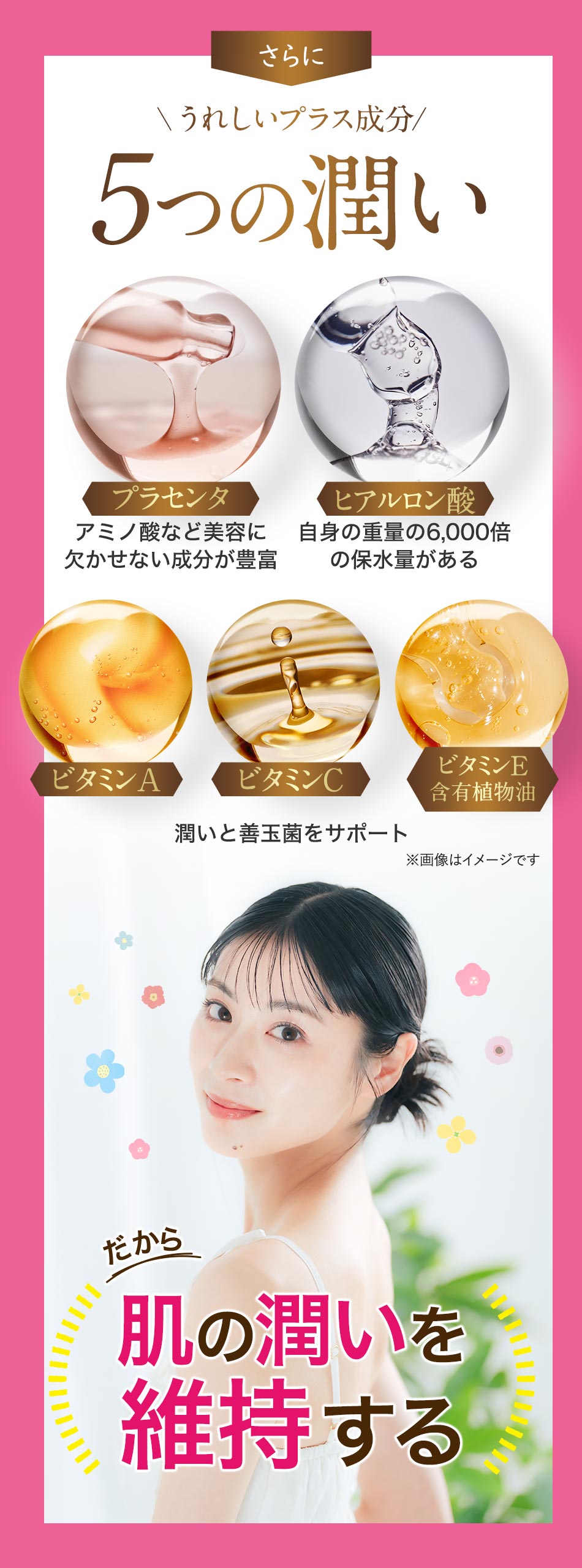 植物性乳酸菌(殺菌)末(植物性乳酸菌、デキストリン)(国内製造)、還元麦芽糖水飴、デンプン、豚プラセンタエキス末、ビタミンE含有植物油 / 結晶セルロース、ビタミンC、ヒアルロン酸、ステアリン酸カルシウム、加工デンプン、微粒二酸化ケイ素、ビタミンA