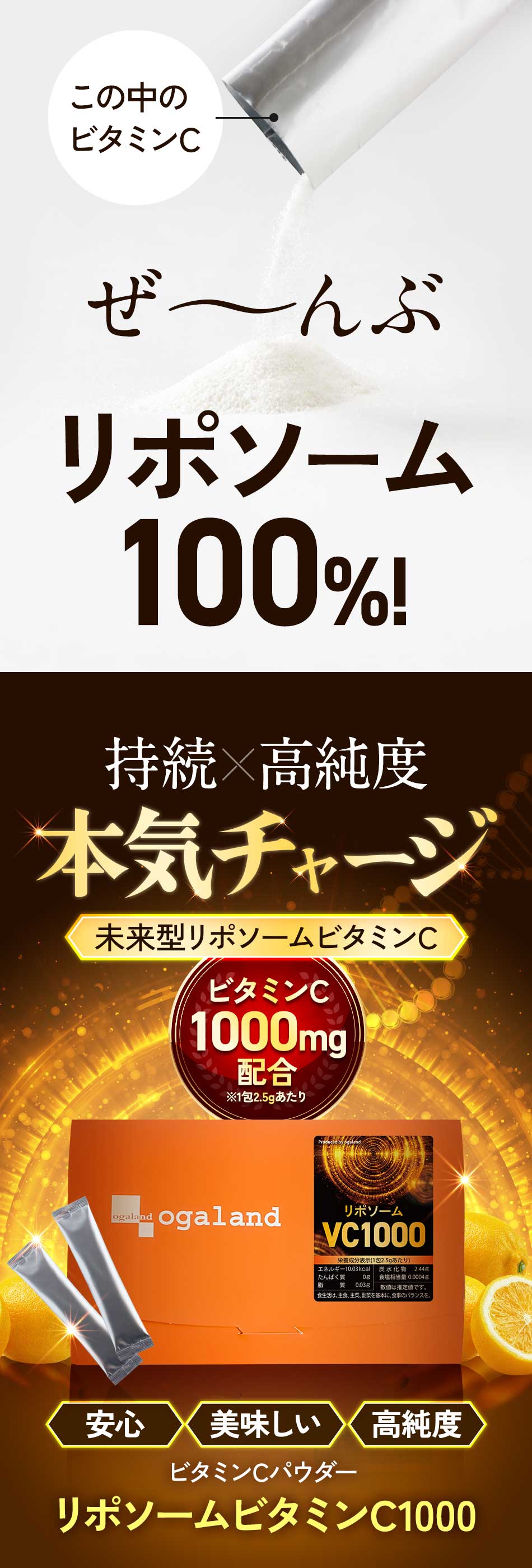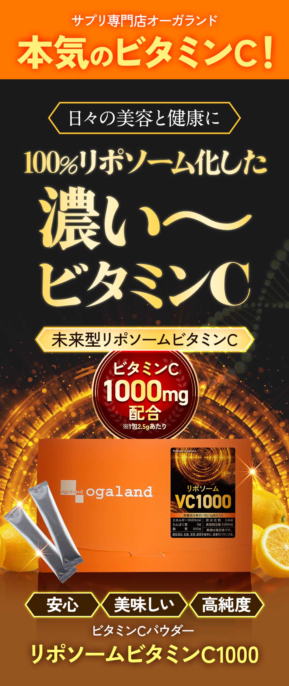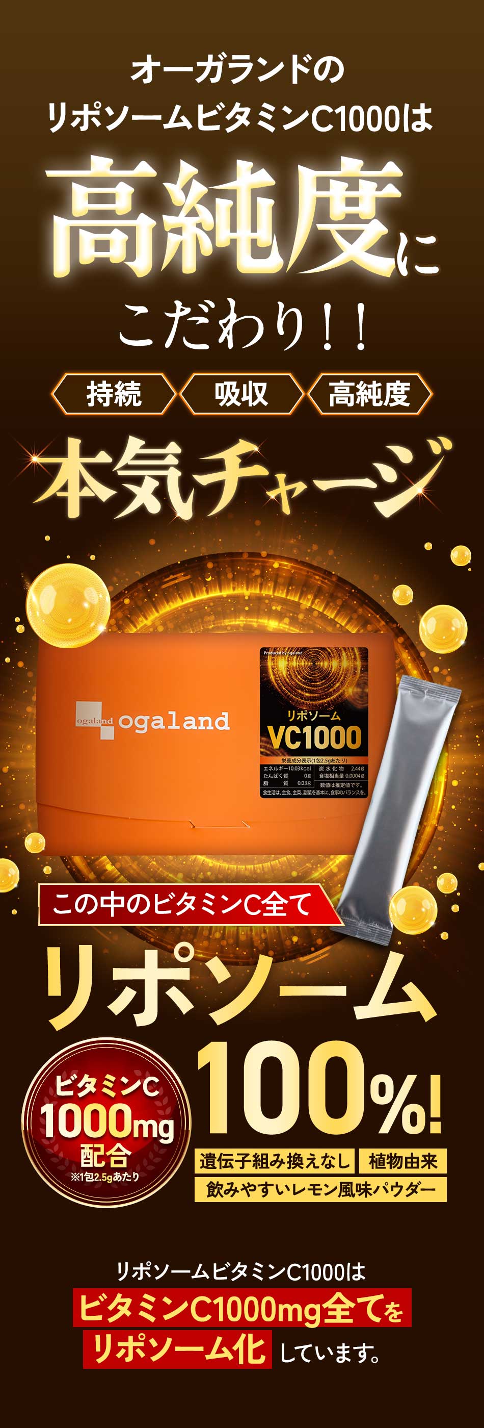 【新発売】リポソームビタミンC1000(20包)(2個セット)粉末 個包装 レモン風味 持続型 リポソーム ビタミンC 1包あたり1000mg 高純度 ビタミンC サプリ パウダー サプリメント 男性 女性 オーガランド 健康 美容 国内製造 送料無料