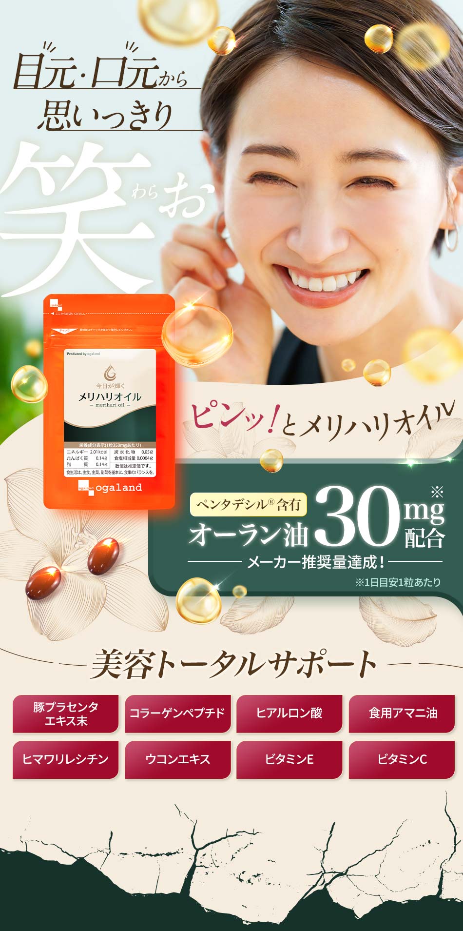 メリハリオイル(6個セット・約6ヶ月分) 豚プラセンタエキス末 コラーゲンペプチド ヒアルロン酸 ビタミンE ビタミンC オーラン油 30mg配合 ヒマワリ レシチン 美容 健康 ウコンエキス 半年分