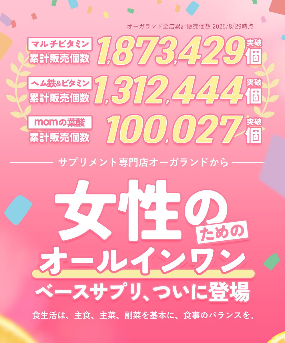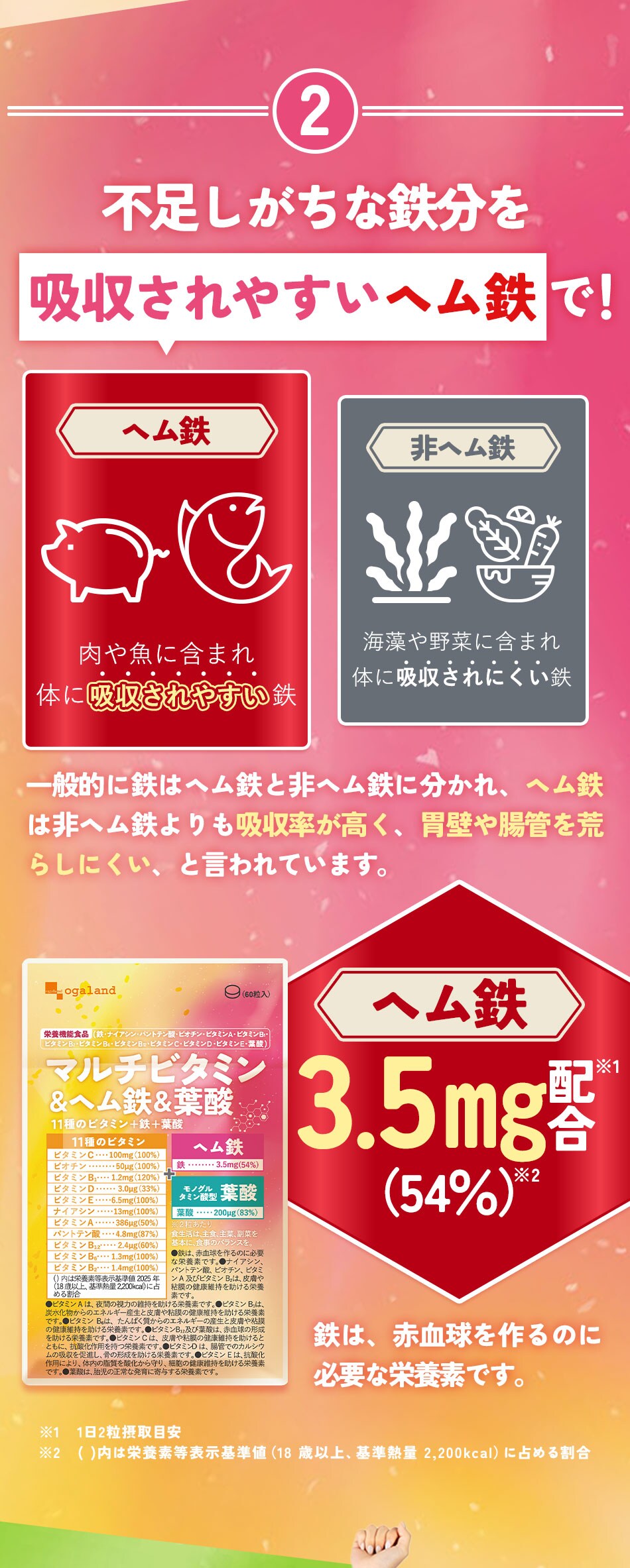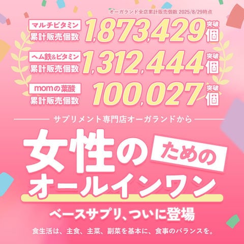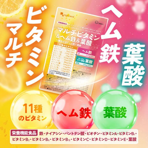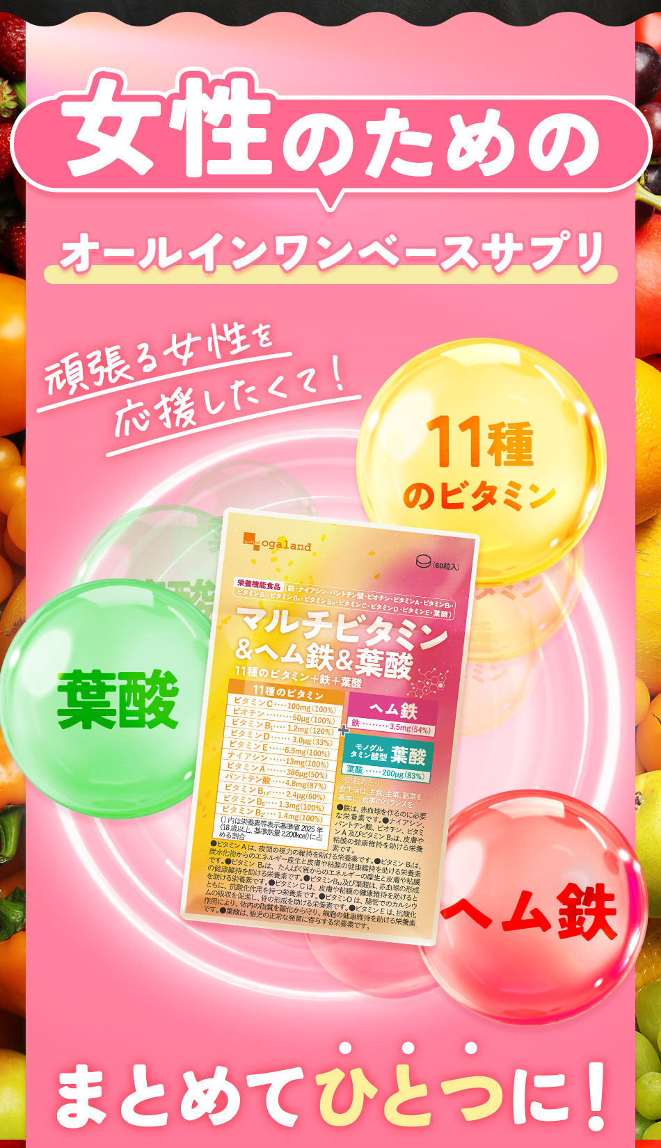【新発売】マルチビタミン & ヘム鉄 & 葉酸(6個セット・約6ヶ月分) 送料無料 オールインワン 葉酸 鉄 ビタミン サプリ サプリメント 栄養機能食品 ビタミンC ビオチン ビタミンB1 ビタミンE パントテン酸 モノグルタミン酸型 女性 必要栄養素 オーガランド
