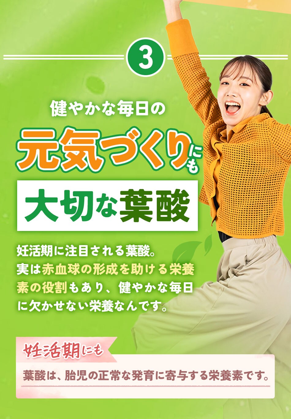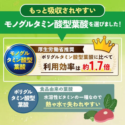 ※葉酸は、胎児の正常な発育に寄与する栄養素ですが、多量摂取により胎児の発育がよくなるものではありません。