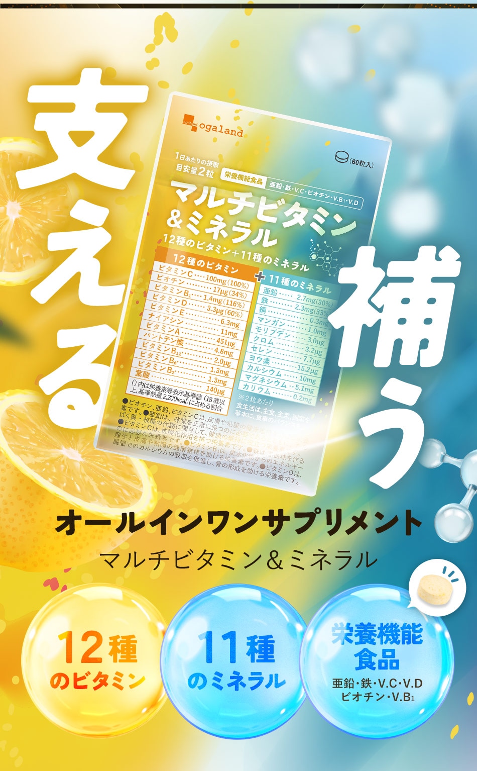 栄養機能食品(亜鉛・鉄・V.C・ビオチン・V.B1・V.D)