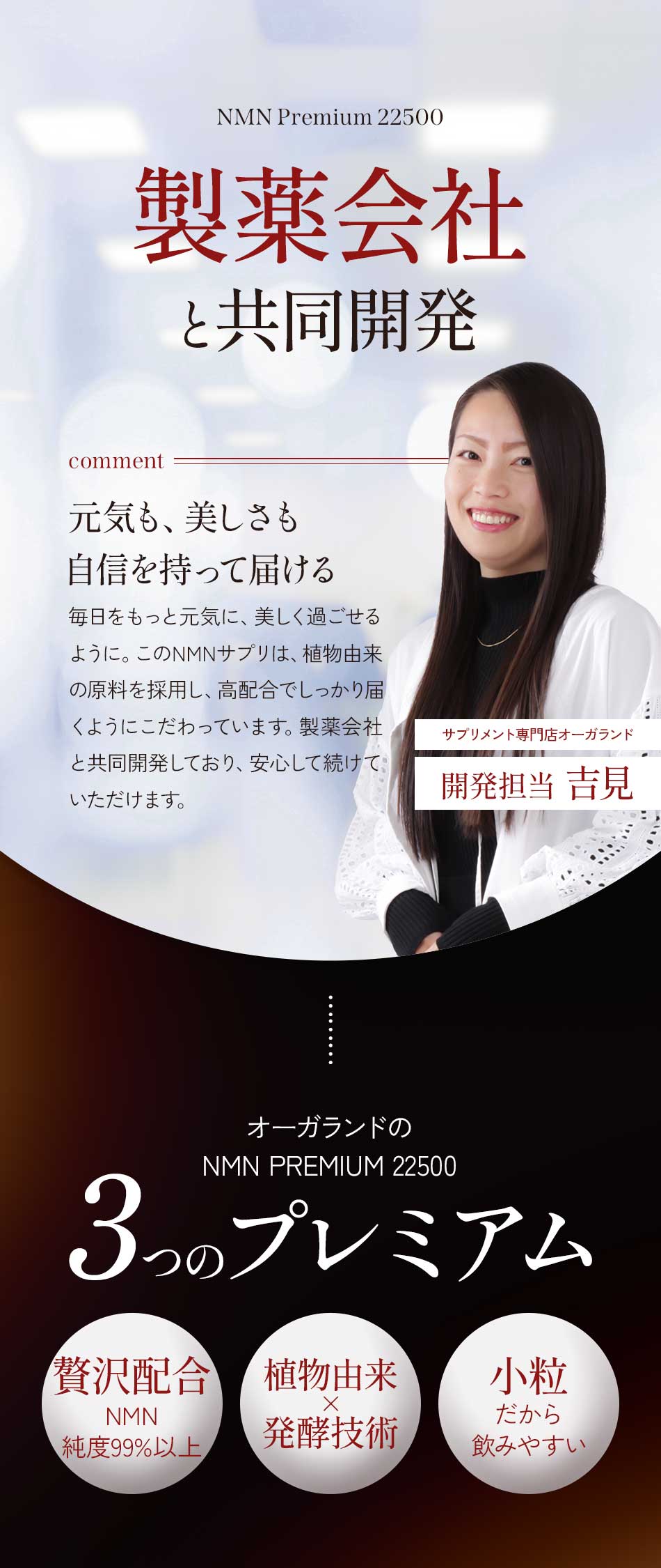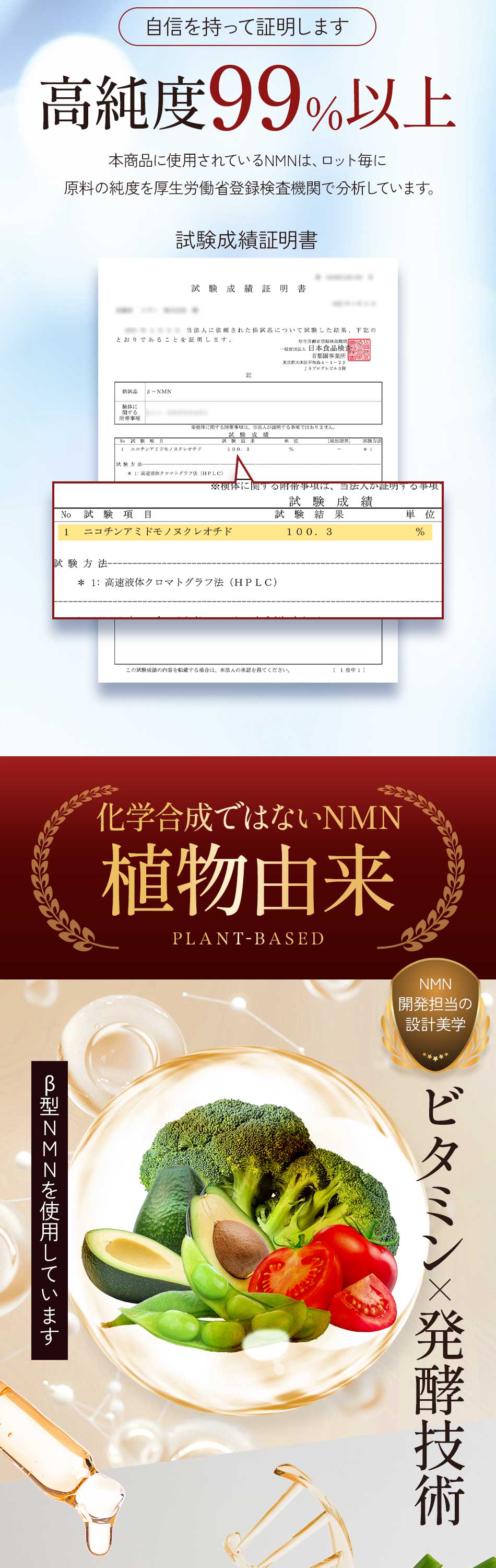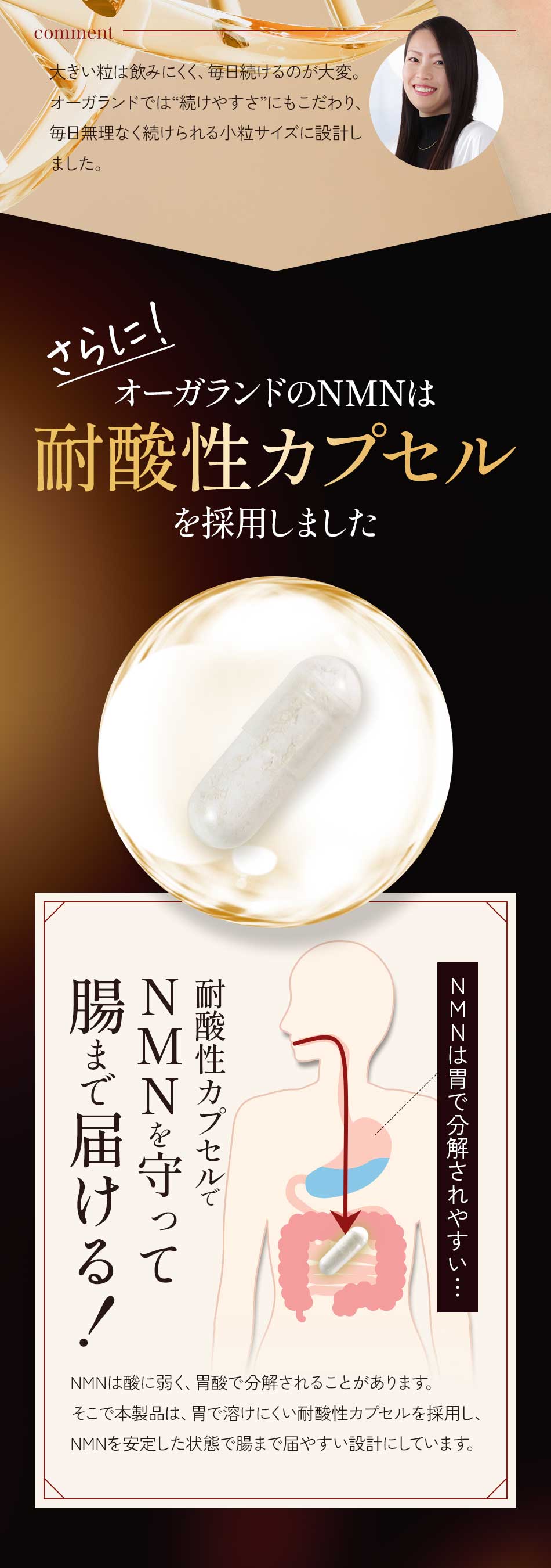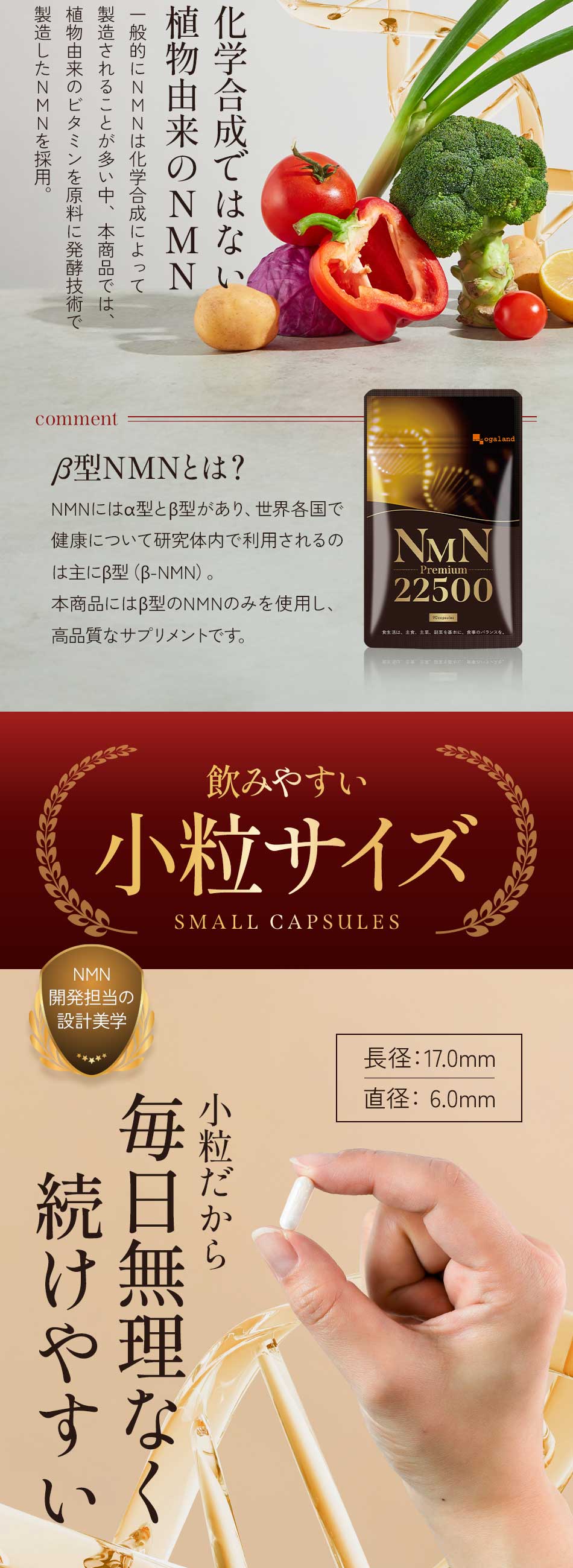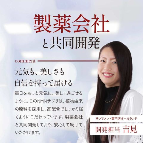 主要原料(1粒あたり):β-NMN(ニコチンアミド・モノヌクレオチド) 250mg