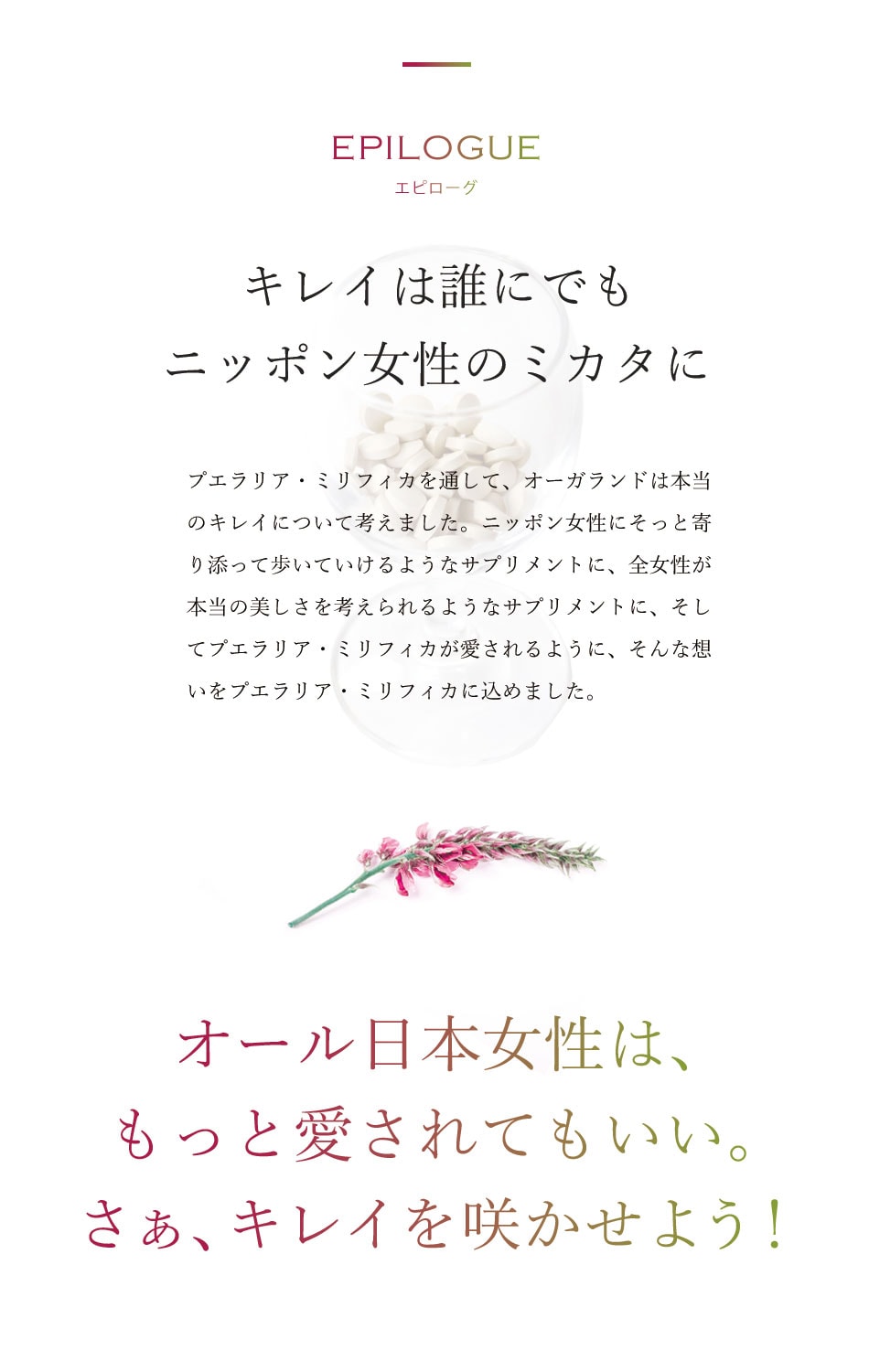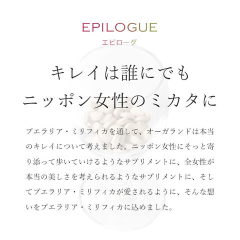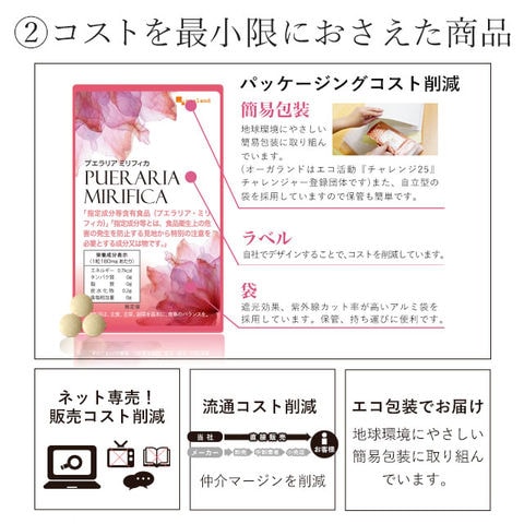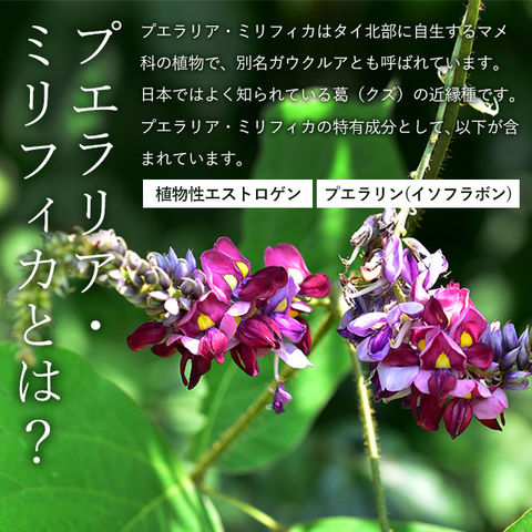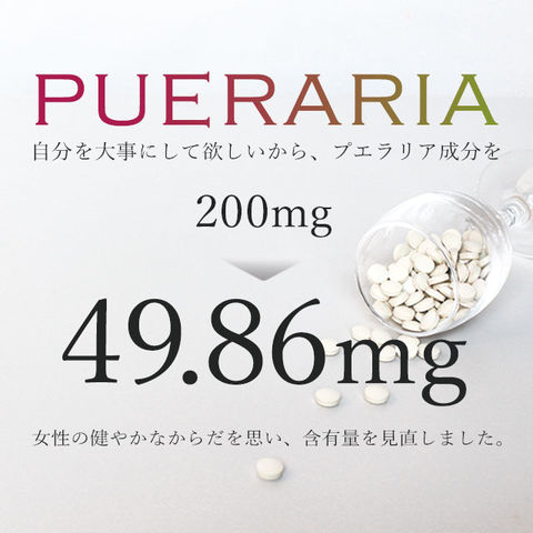 主要原料(1粒あたり):プエラリア・ミリフィカ末 49.86mg