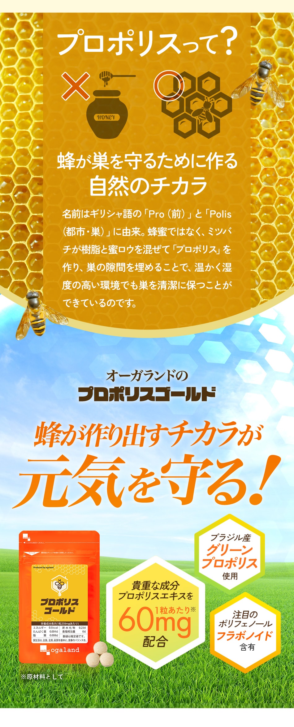 【リニューアル】プロポリスゴールド (2個セット・約6ヶ月分)1粒に60mgの プロポリス サプリメント サプリ 健康 元気 フラボノイド アミノ酸 ミネラル ビタミン フラボノイド 送料無料