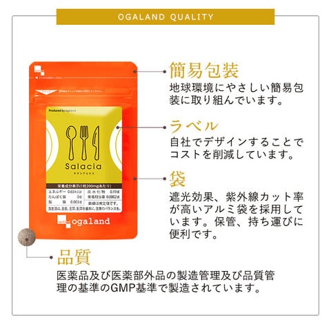 サラシアエキス(約1ヶ月分) 送料無料 オーガランド ダイエットサプリ ダイエットサプリメント 美容 健康 サラシア 運動が苦手な方に 1000円ポッキリ