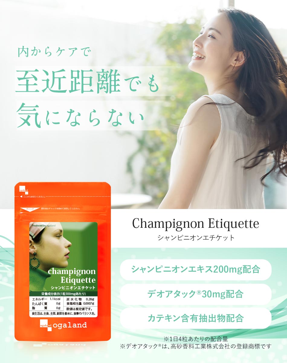 シャンピニオンエチケット(約3ヶ月分) 送料無料 サプリ サプリメント オーガランド エチケット シャンピニオン エキス 乳酸菌 カテキン