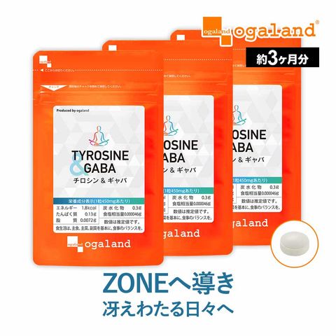 チロシン&GABA(3個セット・約3ヶ月分) サプリ ギャバ 効率 生活の質 アミノ酸 L-チロシン サプリメント 国内製造 オーガランド 送料無料 健康 効率よく仕事がしたい方に