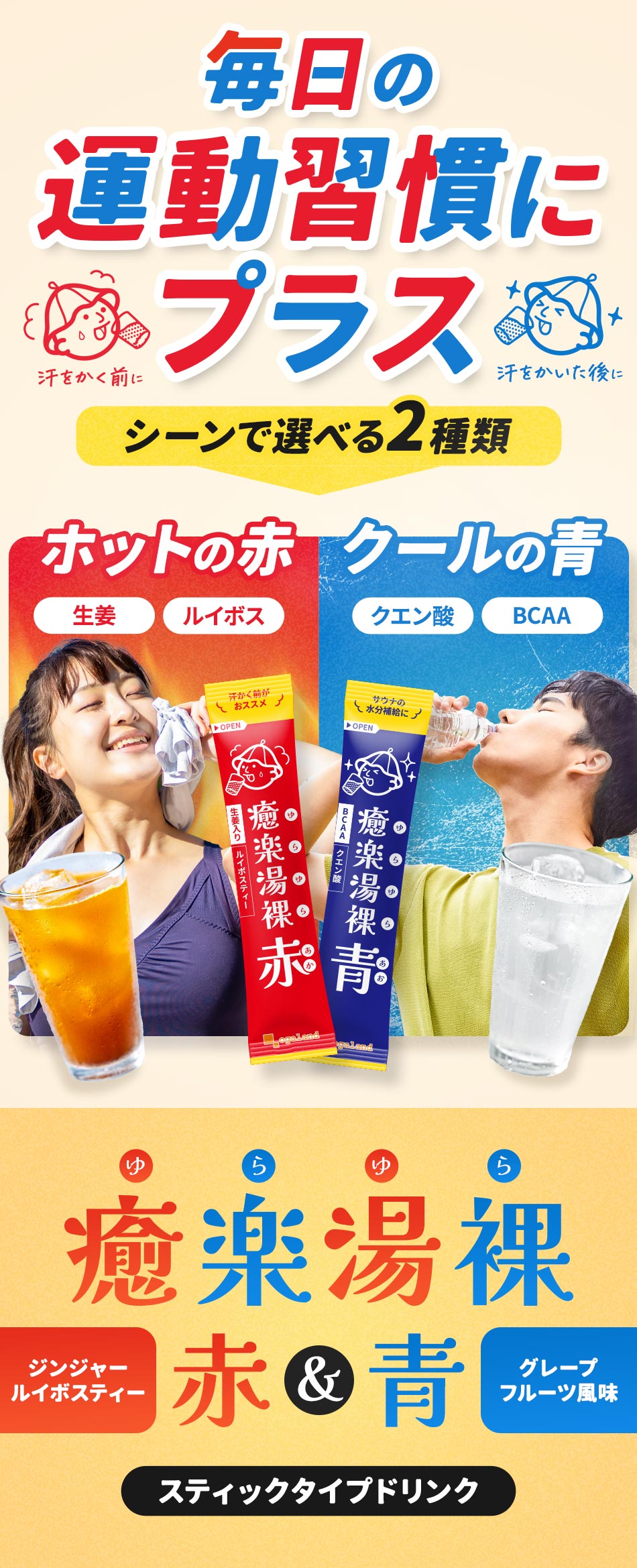 【新商品】 癒楽湯裸 赤(20包) ルイボスティー 粉末 パウダー ショウガ ジンジャーエキス 水出し 水に溶ける さっぱり スポーツ ダイエット サウナ 運動 フレーバー 送料無料 オーガランド 国内製造