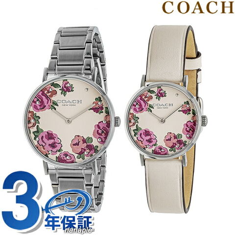 3年保証キャンペーン コーチ レディース 腕時計 14000094 COACH PERRY GIFTSET アナログ ピンク ベージュ ◆コーチは1941年にマンハッタンの小さなロフトで皮革製品の家内工業として始まりました。今日では世界中で絶大な人気を誇るファッションブランドです。男女問わず多岐にわたるシックで機能的なアクセサリーにきめ細かな最高品質の素材を用いて、現代的なアメリカンスタイルを取り入れた身近な高級品という新しい定義を形成しています。コーチブランドの柄、色、詳細な金具を取り入れたコーチウォッチは、最新のコーチバッグやデザインコレクションと新鮮でファッショナブルにマッチすると共に、精密なクオーツを備えてます。 プレゼントにもピッタリな2サイズがセットになったモデル。花柄を文字盤にあしらったダイヤルが華やかです。