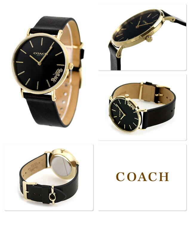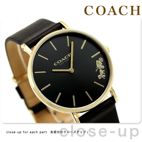 3年保証キャンペーン コーチ ペリー 36mm クオーツ レディース 腕時計 14503333 COACH PERRY アナログ ブラック 革ベルト ◆コーチは1941年にマンハッタンの小さなロフトで皮革製品の家内工業として始まりました。今日では世界中で絶大な人気を誇るファッションブランドです。男女問わず多岐にわたるシックで機能的なアクセサリーにきめ細かな最高品質の素材を用いて、現代的なアメリカンスタイルを取り入れた身近な高級品という新しい定義を形成しています。コーチブランドの柄、色、詳細な金具を取り入れたコーチウォッチは、最新のコーチバッグやデザインコレクションと新鮮でファッショナブルにマッチすると共に、精密なクオーツを備えてます。 ニューヨークシティのウェストヴィレッジの静かな通りの名前にちなんだペリー。4時位置のブランドロゴがポイント。伝統的なラウンド型のウォッチで、日常使いにぴったりです。シーンを選ばないデザインは、自分へのご褒美にはもちろん、プレゼントにもオススメです。