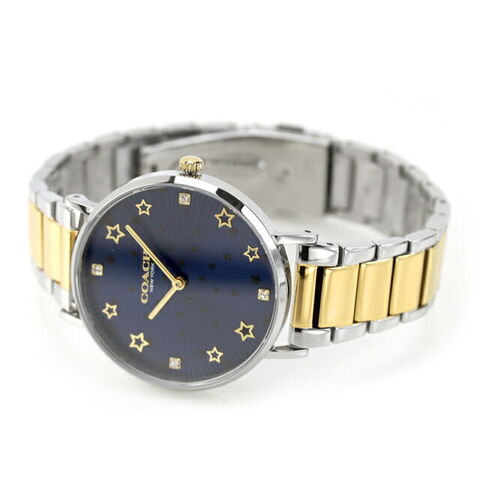 3年保証キャンペーン コーチ ペリー レディース 腕時計 14503523 COACH PERRY アナログ ネイビー ゴールド シルバー ◆コーチは1941年にマンハッタンの小さなロフトで皮革製品の家内工業として始まりました。今日では世界中で絶大な人気を誇るファッションブランドです。男女問わず多岐にわたるシックで機能的なアクセサリーにきめ細かな最高品質の素材を用いて、現代的なアメリカンスタイルを取り入れた身近な高級品という新しい定義を形成しています。コーチブランドの柄、色、詳細な金具を取り入れたコーチウォッチは、最新のコーチバッグやデザインコレクションと新鮮でファッショナブルにマッチすると共に、精密なクオーツを備えてます。 個性的な文字盤に、星のモチーフが並べられた煌めきいっぱいのデザインです。