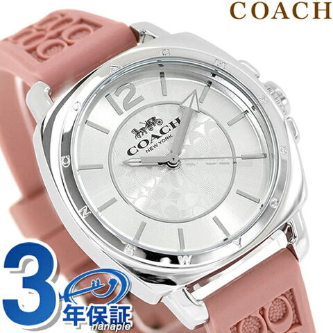 3年保証キャンペーン コーチ ボーイフレンド レディース 腕時計 14503876 COACH BOYFRIEND アナログ シルバー ピンク ◆コーチは1941年にマンハッタンの小さなロフトで皮革製品の家内工業として始まりました。今日では世界中で絶大な人気を誇るファッションブランドです。男女問わず多岐にわたるシックで機能的なアクセサリーにきめ細かな最高品質の素材を用いて、現代的なアメリカンスタイルを取り入れた身近な高級品という新しい定義を形成しています。コーチブランドの柄、色、詳細な金具を取り入れたコーチウォッチは、最新のコーチバッグやデザインコレクションと新鮮でファッショナブルにマッチすると共に、精密なクオーツを備えてます。 コーチのシグネチャー柄が文字盤とベルトに施されたモデル。丸みのあるクッション型ケースを採用しています。