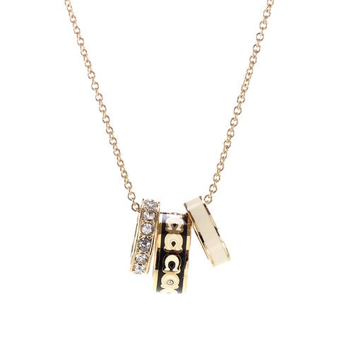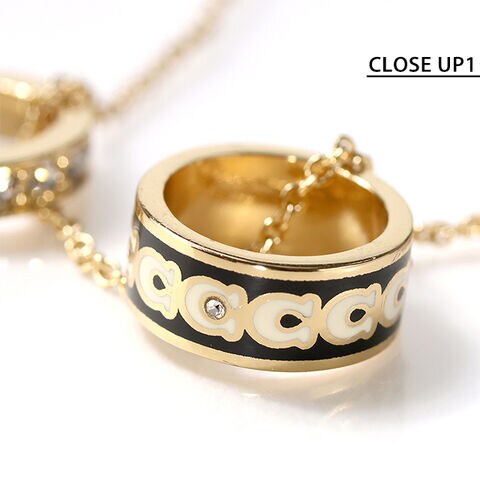 コーチ ネックレス レディース ブランド COACH ペンダント ロゴ リング 3連 408103 GLD 004 ゴールド ブラック ホワイト アクセサリー