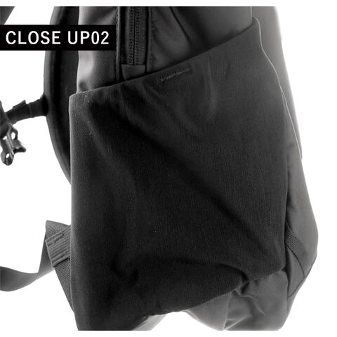 | 仕様 | 開閉(前面):ファスナー式 フロントジッパーポケット×1 開閉(メイン):ダブルファスナー式 パッド入りスリーブ(取り外し可能)、メッシュポケット サイドポケット×2 |