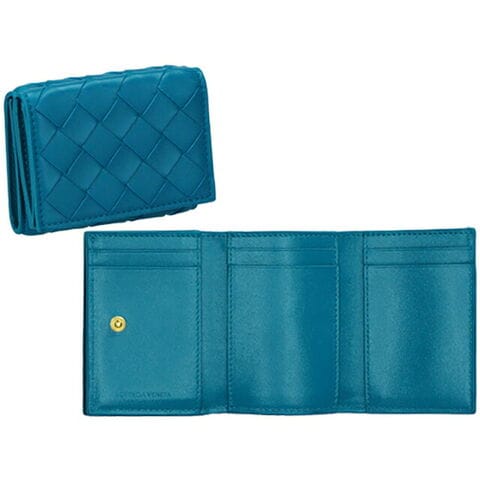 ボッテガ・ヴェネタ 三つ折り財布 レディース ブランド BOTTEGA VENETA イントレチャート 609285 VCPP2 4403 ブルー