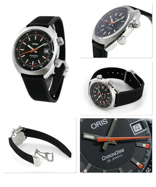 正規品 7年保証キャンペーン オリス クロノリス デイト 39mm スイス製 自動巻き メンズ 腕時計 733-7737-4054RBK ORIS CHRONORIS Date アナログ ブラック ◆ORIS(オリス)は、ポール・カッティン氏とジョージ・クリスチャン氏の2人によってスイスのヘルシュタインで創設されました。近くを流れる小川にちなんで社名をオリスと命名。手頃な価格ながら、革新的で高機能かつ実用的な機能を備えた本格機械式時計で知られ、世界中の時計ファンから愛されているブランドです。 モータースポーツからインスパイアされたオリスの歴史を象徴する、CHRONORISシリーズ。ボリューム感溢れるクッション型ケースとカラフルなダイアルが特徴。4時位置のリューズによりインナーベゼルを回転させ、12時の三角型マーカーを時分針に合わせることで経過時間の読み取りが可能です。 機械式腕時計