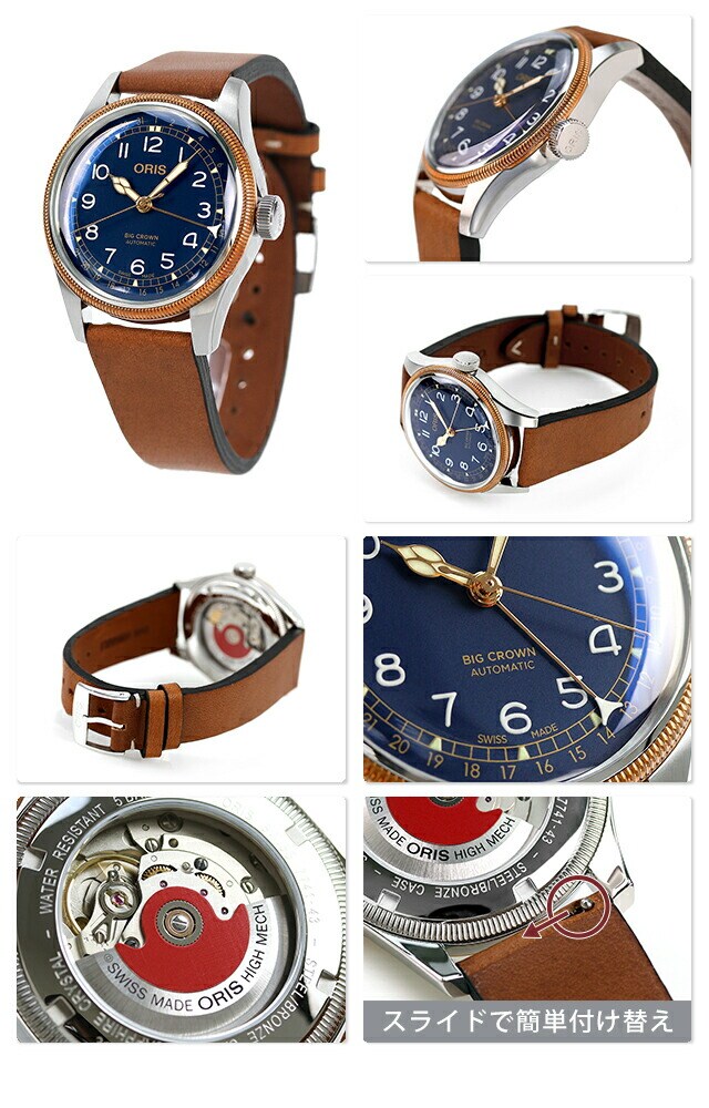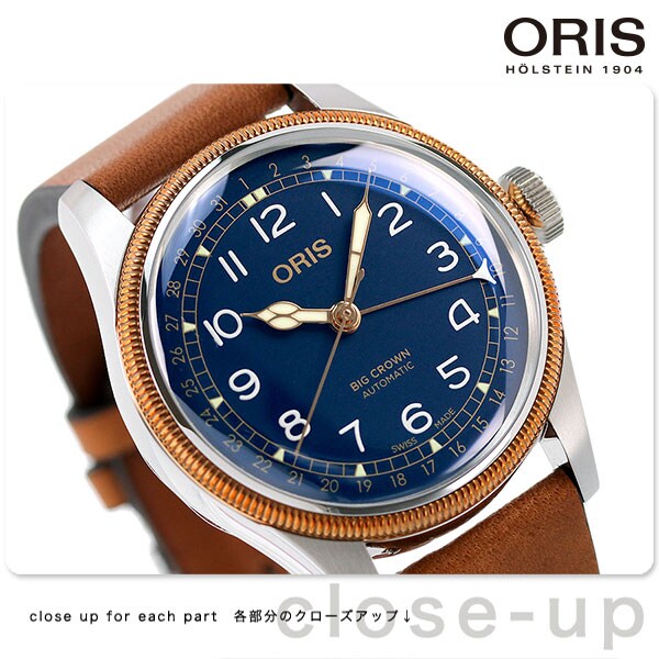 正規品 7年保証キャンペーン オリス ビッグクラウン ポインターデイト 40mm スイス製 自動巻き メンズ 腕時計 754-7741-4365LBR ORIS BIG CROWN POINTER DATE アナログ ブルー×ブラウン 革ベルト ◆ORIS(オリス)は、ポール・カッティン氏とジョージ・クリスチャン氏の2人によってスイスのヘルシュタインで創設されました。近くを流れる小川にちなんで社名をオリスと命名。手頃な価格ながら、革新的で高機能かつ実用的な機能を備えた本格機械式時計で知られ、世界中の時計ファンから愛されているブランドです。 オリスと航空を結びつけたビッククラウンは、1938年誕生以来パイロットウォッチの原型になったコレクション。時代を超越したオリジナルモデルへの忠実なオマージュです。パイロットがグローブを着けたまま操作できる大型リューズ(クラウン)とセンター針で日付を示す特殊なコンプリケーションを備えた、先駆的な時計です。カジュアルスタイルにはもちろん、クラシックな大人の装いにも味わいを添えてくれます。 機械式腕時計