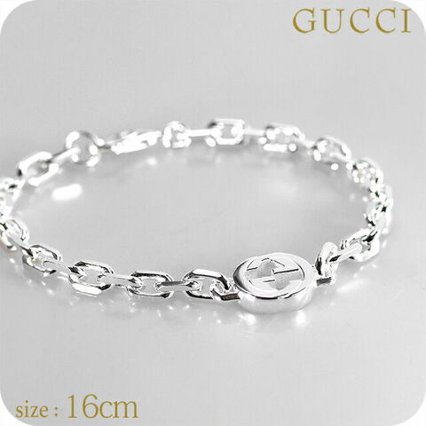 グッチ ブレスレット メンズ ブランド GUCCI インターロッキング チェーン 796351-J8400-8106-16 シルバー アクセサリー