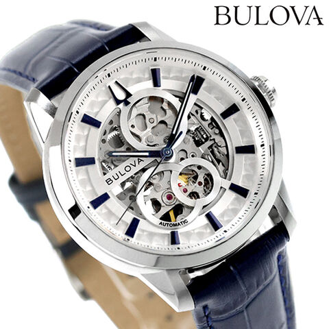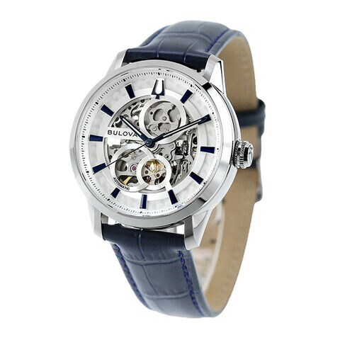 ブローバ クラシック メカニカル 自動巻き 腕時計 ブランド メンズ オープンハート BULOVA 96A330 アナログ シルバー ブルー