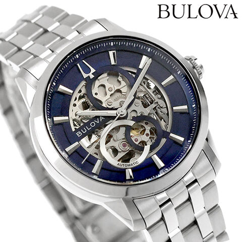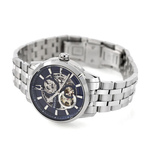 ブローバ クラシック メカニカル 自動巻き 腕時計 ブランド メンズ オープンハート BULOVA 96A331 アナログ ブルー