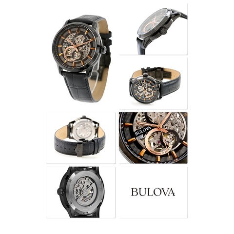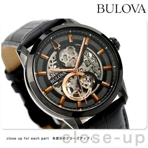 ブローバ クラシック 自動巻き 腕時計 ブランド メンズ オープンハート BULOVA 98A283 アナログ ブラック 黒