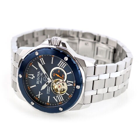 ブローバ マリンスター 自動巻き 腕時計 ブランド メンズ オープンハート BULOVA 98A302 アナログ ネイビー