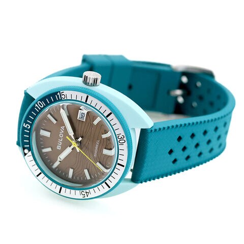正規品 3年保証 送料無料 ブローバ アーカイブスシリーズ スノーケル グリーン ウミガメ クォーツ 電池式 メンズ 腕時計 98B446 BULOVA Archives Series Snorkel アナログ ブラウン グリーン ◆「オーシャノグラファー“デビルダイバー”」。そのデザインを継承した次世代のスポーツウオッチ「スノーケル」が日本に上陸しました。デイリーのさまざまなシーンで気軽に使える10気圧防水仕様。プラスチックと融合したハイブリットセラミックケースを採用し、贅沢な滑らかさと耐久性を両立。シリーズのルーツである海洋に敬意を表した4色展開。文字板に波の模様のレリーフをあしらい、ケースの裏ぶたにはそれぞれのカラーに対応した海洋生物(グリーン:ウミガメ)が刻印されています。 発売日:2026年4月発売 おしゃれ 防水 クリスマスプレゼント 男性 実用的 20代 30代 40代 50代 60代 大人かっこいいメンズ腕時計は腕元をオシャレに彩る人気アイテム!カジュアルやビジネスで使えるブランド時計は記念日のギフトにもおすすめです 名入れ 送料無料