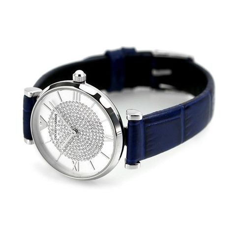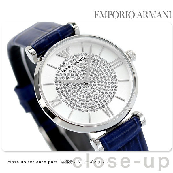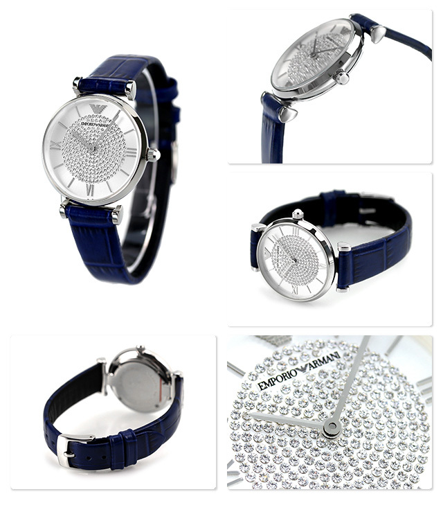3年保証キャンペーン エンポリオ アルマーニ ジャンニティー バー 32mm 川口春奈さん 着用モデル クオーツ レディース 腕時計 AR11344 EMPORIO ARMANI GIANNIT-BAR アナログ シルバー×ブルー 革ベルト ◆エンポリオ・アルマーニは、モード界で大活躍したGIORGIO ARMANI(ジョルジオ・アルマーニ)の若者向けセカンドラインとして「装うことを楽しく遊ぼう」をコンセプトに発表されました。実際に手にとってみると、洗練されたシルエットは細やかに創り込まれていることがわかります。常に紳士服の機能性を応用し、女性らしい雰囲気、贅沢な素材と美しいシルエットに着心地の良さを追求し、そのコンセプトは腕時計などのアクセサリーにも引き継がれています。 シンプルかつ上品でクラシカルなモデル。腕元におさまる程よいケースサイズも魅力。日常使いからビジネス、パーティーにまでシーンを問わずお使いいただけます。誕生日などのプレゼントにもおすすめです。 ジアンニ ジャンニ