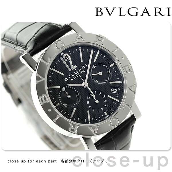 3年保証キャンペーン ブルガリ ブルガリブルガリ 38mm クロノグラフ スイス製 自動巻き BB38BSLDCH BVLGARI BVLGARI BVLGARI 38mm メンズ 腕時計 アナログ ブラック 世界中から愛される代表的なブランド「BVLGARI(ブルガリ)」。1884年、ソティリオ・ブルガリが、ローマにジュエリー店を開いたのが始まりです。1970年代には世界へ大きく進出し、大胆かつ革新的なスタイルは多くの人々の心を掴みました。時計だけではなくフレグランス・アクセサリー、更にはブルガリホテルやチョコレートなどを展開。幅広くラグジュアリーライフの提案を行っており、今もなお世界中の人々を魅了し続けています。 1977年に発表され、2015年に40周年を迎えたブルガリ ブルガリシリーズ。ブルガリの代表的な人気コレクションです。ベゼルに「BVLGARI BVLGARI」のロゴを刻印で配置。古代ローマのコインからインスピレーションを受け、デザインされました。ブルガリらしい華やかさと、シンプルで洗練されたデザインは幅広い方にご愛用いただけます。 機械式腕時計
