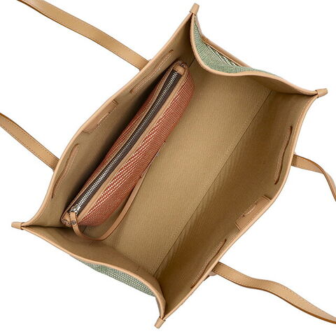 | 仕様 | 内側仕切り 無 底部ビョウ数 0 内側色 BEG 容量 B4 持ち手長さ 53.5cm 持ち手高さ 21cm 持ち手太さ 1.5cm 持ち手着脱 不可 開閉 オープン式MB式 商品付属品 ポーチ(着脱可)×1(17×29×1) |