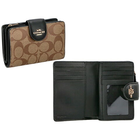コーチ 二つ折り財布 レディース ブランド COACH シグネチャー レザー C0082 IMCBI 1 カーキ/ブラック