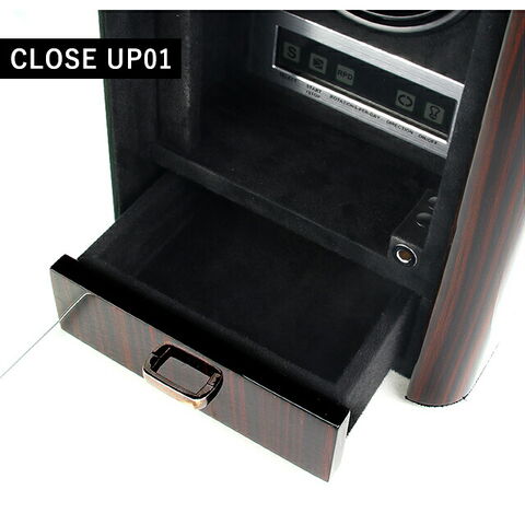 | 仕様 | 素材:MDFウッド、マッカーサーフィニッシュ 収納本数 ウォッチワインダー:1本 回転数:約600 or 約900 or 約1200 or 約1500 or 約1800 or 約2100回転/日 回転方向:時計回り or 反時計回り or 両方向回転 備考:LEDライト付、USBジャック付、引出し付 |