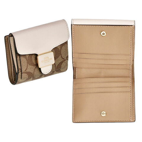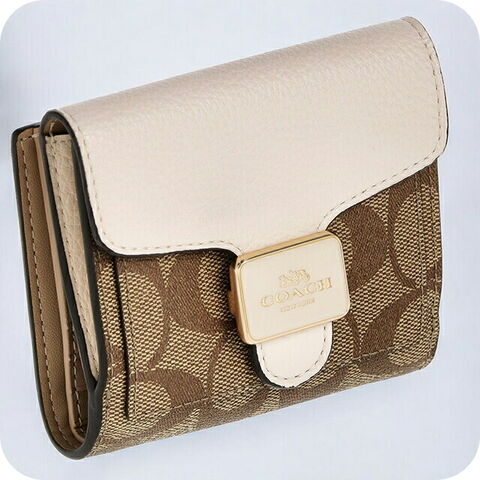 コーチ 二つ折り財布 レディース ブランド COACH シグネチャー レザー C7805 IMDJ8 1 ベージュ/ホワイト