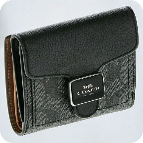 コーチ 二つ折り財布 レディース ブランド COACH シグネチャー レザー C7805 SVTSQ 1 グラファイト/ブラック