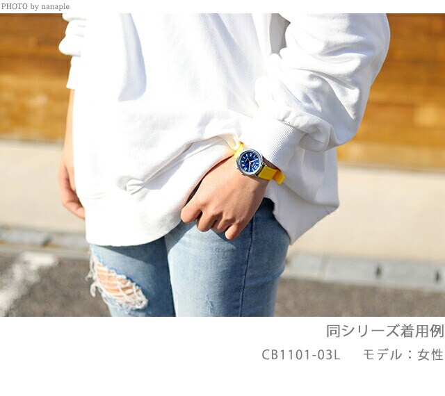 正規品 7年保証キャンペーン シチズン コレクション エコ・ドライブ電波時計 ダイレクトフライト 大坂なおみモデル 電波ソーラー レディース 腕時計 CB1101-03L CITIZEN COLLECTION アナログ ブルー×イエロー ◆爽やかなコントラストが映える、大坂なおみモデルが登場。空のブルーとイエローのテニスボールからインスピレーションを受けた、コントラストが映えるカラーリングが特徴。ガラスの縁にチェッカー柄をあしらい、「大坂なおみモデル」ならではの、スポーティーさを演出。世界26都市表記の中で、テニス4大大会(グランドスラム)の都市だけを濃いブルーで表現。また、オーストラリアのタイムゾーンには、通常のシドニー/SYDから、 全豪オープン開催地メルボルン/MEL表記に替えた限定特別仕様。軽さと快適な着け心地を実現するスーパーチタニウムのケースを採用し、ダイレクトフライト機能搭載。裏ぶたには大坂選手のサイン刻印入り。ブラックの替えバンド付きなので、気分やファッションに合わせて2つのテイストをお楽しみいただけます。 発売日:20年1月発売