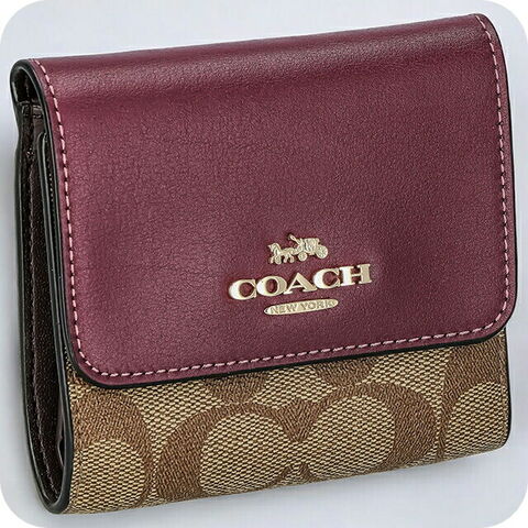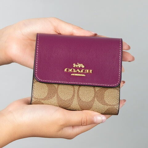 コーチ 三つ折り財布 レディース ブランド COACH シグネチャー CE930 IMRSF 1 カーキブラウン/パープル