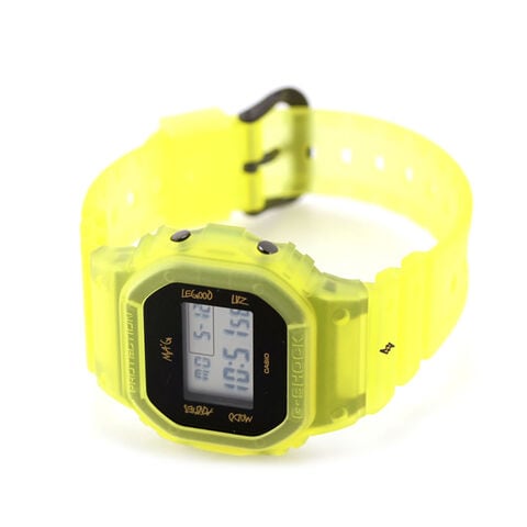 7年保証キャンペーン gショック ジーショック G-SHOCK ジェイ バルヴィン コラボレーションモデル DIGITAL 5600シリーズ クォーツ 電池式 替えベルト クォーツ 電池式 メンズ 腕時計 DWE-5600JB-1A9DR J Balvin Collaboration Model DIGITAL 5600 SERIES デジタル ブラック スケルトンイエロー ◆G-SHOCKから、コロンビア出身で世界を舞台に活躍するアーティストJ Balvin(ジェイ バルヴィン)とのコラボレーションモデルです。時計のフェイスにはJ Balvin本人によるスペイン語の手書き文字を配置しました。全体を半透明マットイエローで統一し、美錠、裏蓋、ボタンをブラックで配色。交換可能なブラックベゼルとバンドが付属しています。彼のシグネチャーであるライトニングボルトを遊環に型抜きするとともに、裏蓋、LEDバックライトにもロゴを配置。半透明ブラックのパッケージとともに、世界トップクラスの音楽アーティストとのコラボレーションを体現する、個性的なG-SHOCKとなっています。 国内モデル品番:DWE-5600JB-1A9JR
