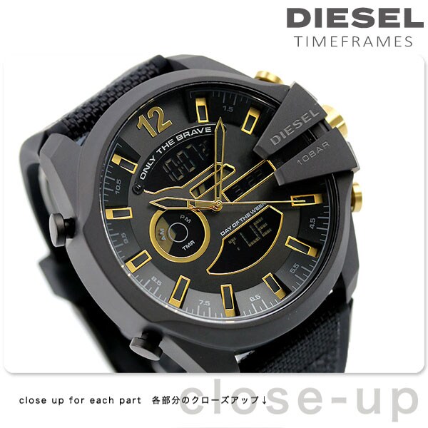 3年保証キャンペーン ディーゼル メガチーフ 51mm クオーツ メンズ 腕時計 DZ4552 DIESEL MEGA CHIEF アナデジ オールブラック×ゴールド ◆ディーゼルは若い世代を中心に幅広い層から人気を集める、イタリアで最もオシャレなワーク系カジュアルブランドです。その人気はアパレルだけにとどまらず、腕時計においても斬新なデザインと良い素材を使用した品質ともに高い評価を受けています。 アナログとデジタル表示を搭載したMEGA CHIEFが登場。バーインデックスを配したサンレイダイヤルとストラップには、落ち付いたカラーを採用。男心をくすぐるメカニカルなデザインが特徴。重量感があり男らしい腕元を演出します。誕生日や記念日などのプレゼントにもおすすめです。 メガ チーフ