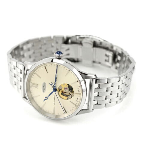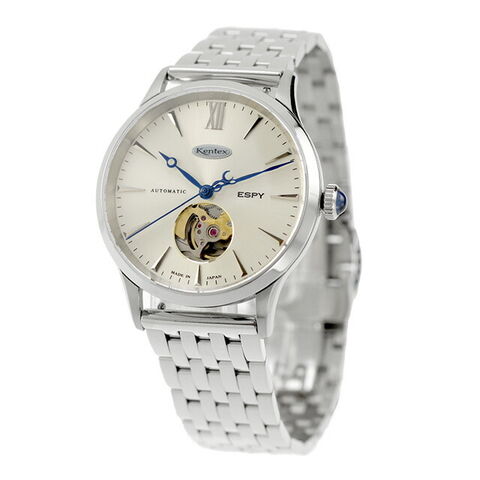 ケンテックス エスパイ ドレスオープンハート 自動巻き 腕時計 ブランド メンズ オープンハート 替えベルト Kentex E660M-02 アナログ シャンパンシルバー