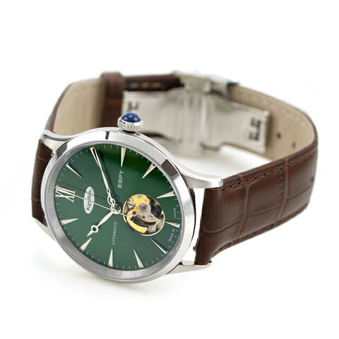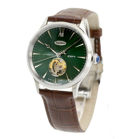 ケンテックス エスパイ ドレスオープンハート 自動巻き 腕時計 ブランド メンズ オープンハート Kentex E660M-04 アナログ ビリヤードグリーン ブラウン 日本製