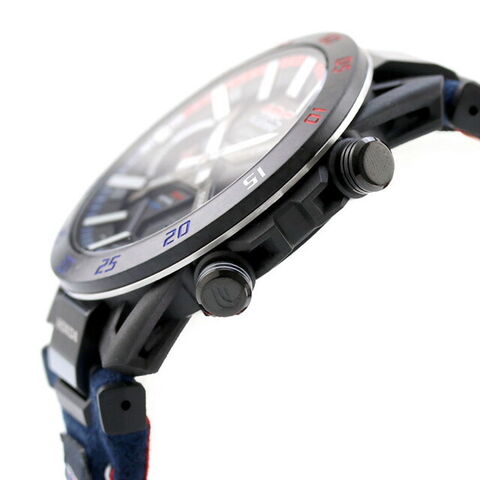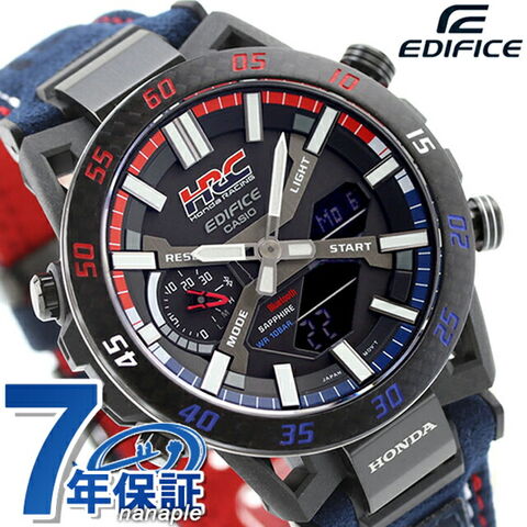 7年保証キャンペーン エディフィス EDIFICE ホンダレーシング コラボレーションモデル ソーラー Bluetooth ソーラー メンズ 腕時計 ECB-2000HR-1ADR Honda Racing Collaboration Model EDIFICE SOSPENSIONE アナデジ ブラック ブルー ◆世界最高峰の舞台で数々の感動を生み出し続けるHRC (Honda Racing Corporation)。そのレーシングスピリットを象徴するトリコロールをテーマに、レッド、ブルー、ホワイトのカラーリングをHonda監修のオリジナルデザインに落とし込んだコラボレーションモデルです。両面にアルカンターラを採用したバンドにはHondaのレーシングエンジンのバルブとコンロッドのラインドローイングがレーザーでマーキングされています。HRC、Hondaロゴも文字板、バンド、裏蓋などにレイアウトされ、Hondaレーシングスピリットを身につけられる仕様となっております。 国内モデル品番:ECB-2000HR-1AJR