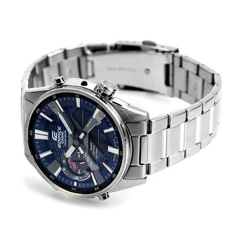 7年保証キャンペーン カシオ エディフィス ECB-S100 シリーズ 海外モデル ワールドタイム ソーラー メンズ 腕時計 ECB-S100D-2ADF CASIO EDIFICE ECB-S100 Series アナデジ ブラック×ブルー ◆先進の高機能メタルクロノグラフとして進化を続ける「EDIFICE(エディフィス)」から、機能性とデザイン性を併せ持つデジタル・アナログコンビのモデルが登場。金属メッシュの文字盤は、スポーツカーのフロントグリルを連想させ、ダブルLEDが文字盤とLCDを照らし、夜間の視認性を高めます。また、専用アプリケーションと連携することにより、時刻修正などを簡単に行うことができます。スポーティなデザインながら落ち着いたカラーで、スーツスタイルからカジュアルスタイルまで、幅広いファッションに合わせてお使い頂けます。 日本未発売モデル