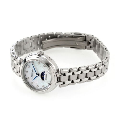 | 仕様 | 日常生活用防水(5気圧) 平均月差±15秒(非受信時) 絵表示(サンアンドムーン) 日中米欧電波受信 受信局自動選択機能 サマータイム機能 定時受信機能 強制受信機能 衝撃検知機能 針自動補正機能 充電残量表示機能 充電警告機能 過充電防止機能 ワールドタイム機能(24時差) パワーセーブ機能 駆動期間:フル充電時約4年可動(パワーセーブ作動時) 耐ニッケル 耐磁1種 白蝶貝文字板 白蝶貝彫刻 文字板:9ポイントダイヤモンド入 日本製 |