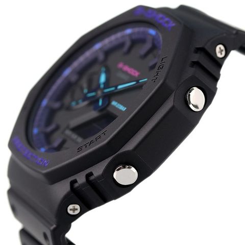 7年保証キャンペーン カシオ Gショック アナログデジタル 2100シリーズ ワールドタイム 8角形 クオーツ メンズ 腕時計 GA-2100VB-1ADR CASIO G-SHOCK ANALOG-DIGITAL 2100 Series アナデジ オールブラック ◆タフネスを追求し進化を続けるG-SHOCKから、バーチャルの世界を表現したVirtual Blueシリーズです。カラーリングはブラックをベースにブルー・ヴァイオレットをアクセントカラーに使用し、バーチャルの近未来的な雰囲気を表現。定番の八角形ベゼルに、ブラックとブルーの配色でクールにまとめました。デザイン、フォルム、サイズに徹底的にこだわった、G-SHOCKの次世代スタンダードを担うモデルです。 国内モデル品番:GA-2100VB-1AJF
