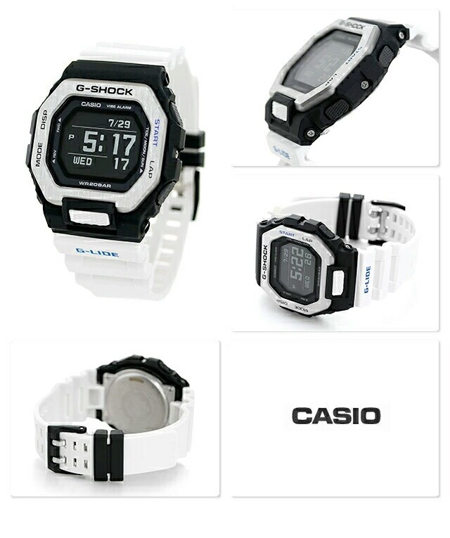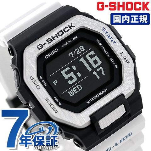 正規品 7年保証キャンペーン カシオ Gショック Gライド GBX-100シリーズ タイドグラフ ムーンデータ 満潮 干潮時間 クオーツ メンズ 腕時計 GBX-100-7JF CASIO G-SHOCK G-LIDE GBX-100 Series デジタル ブラック×ホワイト ◆G-SHOCKのスポーツラインG-LIDEのスマートフォン連携モデルです。潮汐情報や日の出/日の入時間を、専用アプリ内の世界約3300カ所から簡単に時計側に設定できます。また、高精細なMIP液晶で視認性を向上。タイドグラフ、ムーンデータに加え、満潮/干潮時間、満潮/干潮の潮位、日の出/日の入時間が表示可能で、一目で状況を詳細に把握でき、トレーニング計測機能と合わせてサーファーをサポートします。ベゼルは樹脂とメタルを組み合わせトップ部分はステンレスを用い、ヘアラインとホーニング加工を施した仕上げ分けで強度と質感を両立。また、樹脂のガード構造を用い、6時位置のボタンガードと共に耐衝撃性能を備えました。フィット性と水、汗逃げを考慮したスリット入りのソフトウレタンバンドで着け心地も追求しました。 BIG CASE シリーズ