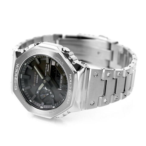 7年保証キャンペーン カシオ gショック ジーショック G-SHOCK 2100シリーズ Bluetooth ソーラー メンズ 腕時計 GM-B2100D-1ADR CASIO FULL METAL 2100 SERIES アナデジ ブラック 黒 G-SHOCK初代モデルDW-5000Cのコンセプトを受け継いで開発されたデジタル/アナログ「GA-2100」シリーズのフルメタルモデルです。スクリューバックケース、ベゼル、バンドにステンレスを採用し、落下時の衝撃からモジュールを守る耐衝撃構造をとりながらも、無駄を省いたシンプルなデザインを目指しました。八角形のベゼル形状や、バンドのディンプルデザインも継承しています。高密度実装技術によりスリムで高機能なモジュールを搭載することで、薄型化を実現。着け心地の良さにもこだわりました。Bluetooth通信機能により専用アプリと接続し、時刻情報を取得し正確な時を刻み、タフソーラー、高輝度なダブルLEDライトなど実用的な機能も兼ね備えています。 国内モデル品番:GM-B2100D-1AJF ギフト プレゼント 父の日 敬老の日 クリスマス 20代 30代 40代 50代 60代