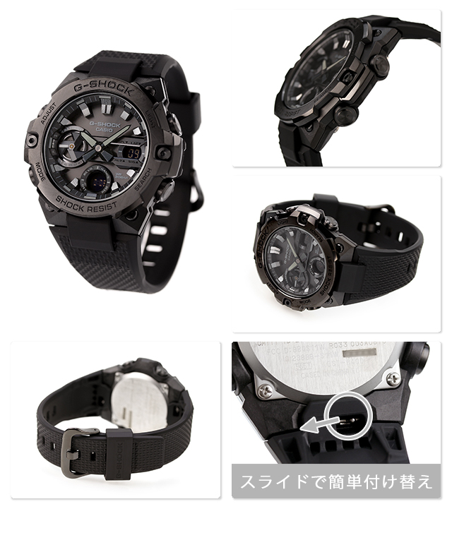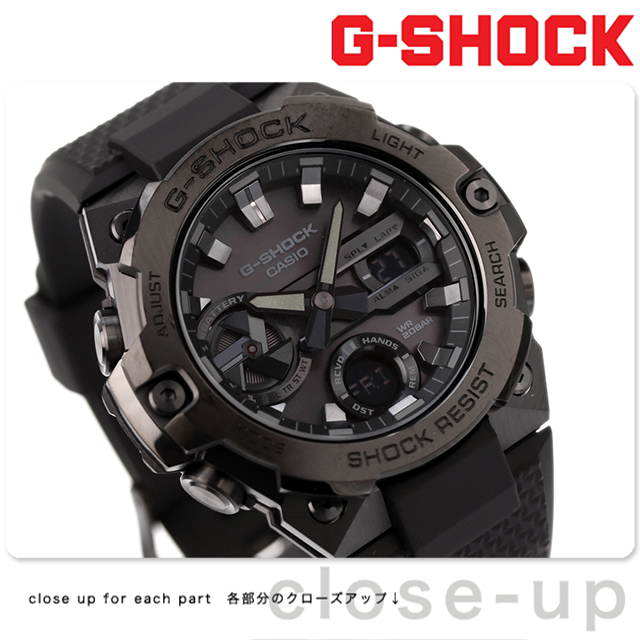 7年保証キャンペーン gショック ジーショック CASIO G-SHOCK Bluetooth ソーラー メンズ 腕時計 GST-B400BB-1ADR G-STEEL GST-B400 Series アナデジ オールブラック 黒 ◆1983年の発売以来、飽くなき強さを求めて進化を続けるタフネスウオッチG-SHOCK。メタルと樹脂の異素材を融合したG-STEELをベースに人気のオールブラック仕様のモデルです。ブラックをベースにブラックIPを施したメタルベゼルを採用し、シックでファッションアイテムとして幅広く活用できるデザインに仕上げました。ベースモデルには、薄型モジュールとカーボンコアガード構造のGST-B400を採用しています。タフネスとデザイン性を両立した、G-STEELシリーズにオールブラックのカラーリングで、幅広くご利用いただけるクールなデザインとなっております。T-シャツなどのカジュアルスタイルからジャケットやスーツにもあわせていただけます。 国内モデル品番:GST-B400BB-1AJF
